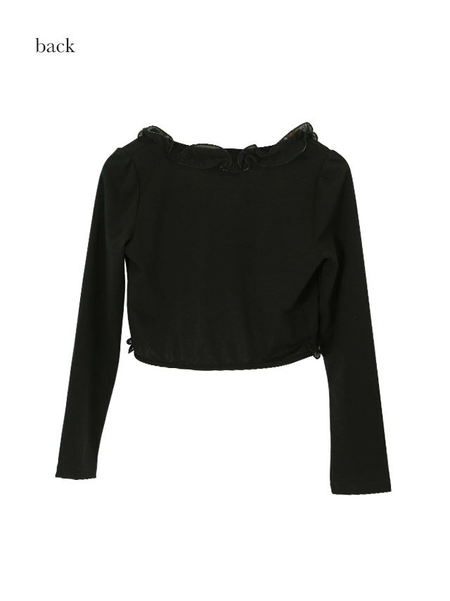 3. フリルデザインショート丈長袖ボレロ (ブラック) (Mサイズ/Lサイズ)