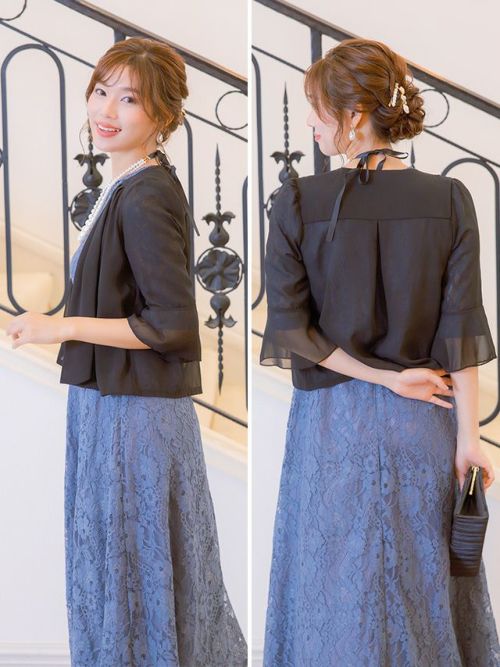 4. [SALE] タックドレープシフォンベルスリーブ七分袖ボレロ (Mサイズ/Lサイズ)