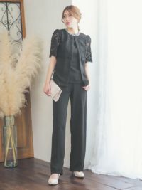 [SALE] シースルー袖ビスチェ風デザインパンツセットアップパーティードレス (Sサイズ~3Lサイズ)
