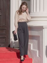 エレガントな風合いのワイドパンツのセットアップドレス。
