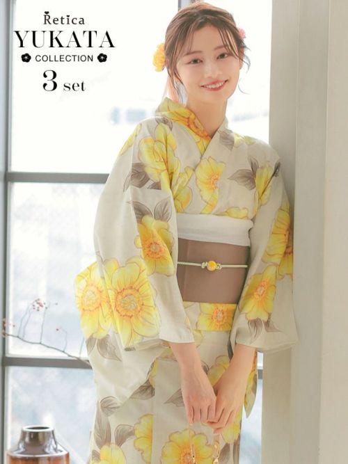 3. [SALE] 水彩ポピーSweet浴衣3点セット (浴衣+平帯or作り帯+下駄)