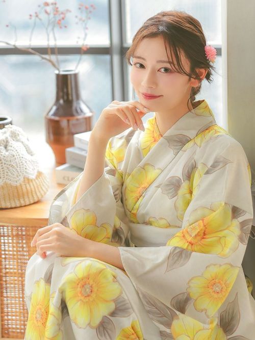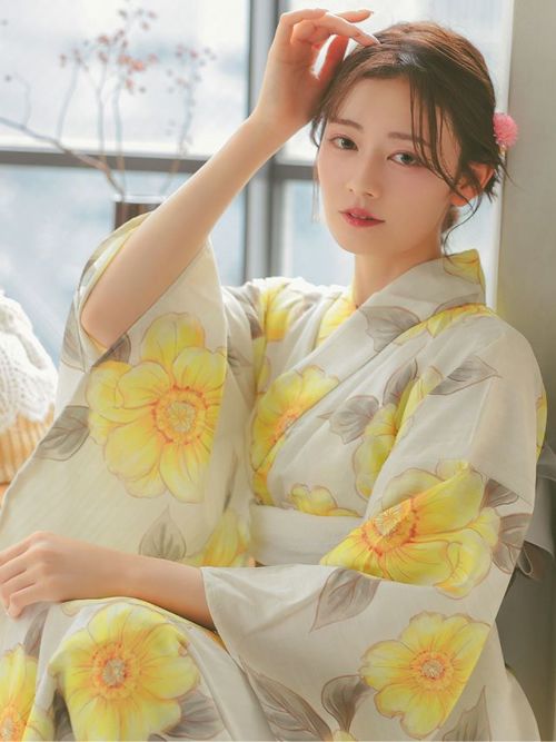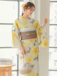 ふんわり優しく大人フェミニン♪ [SALE] 水彩ポピーSweet浴衣3点セット (浴衣+平帯or作り帯+下駄)
