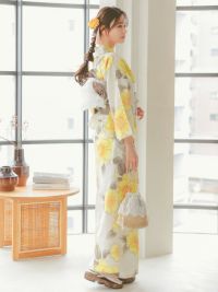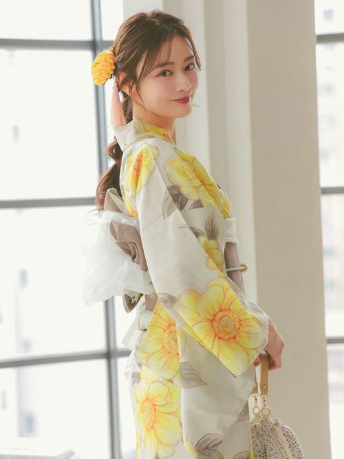 繊細で美しい水彩ポピー SWEETな浴衣3点セットのサイド全身
