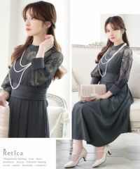 [SALE] ワンカラーレース五分袖ワイドパンツプチプラパーティードレス (Sサイズ~3Lサイズ)