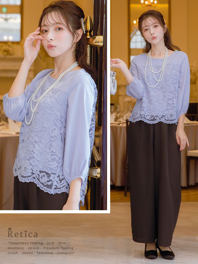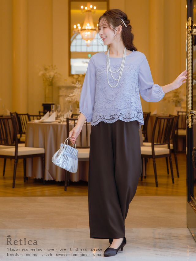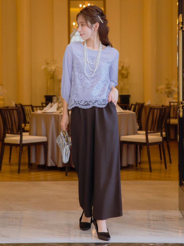 大人の綺麗目パンツデザイン♪ [SALE] レースMIXワイドパンツセットアップパーティードレス (Sサイズ~XXLサイズ)