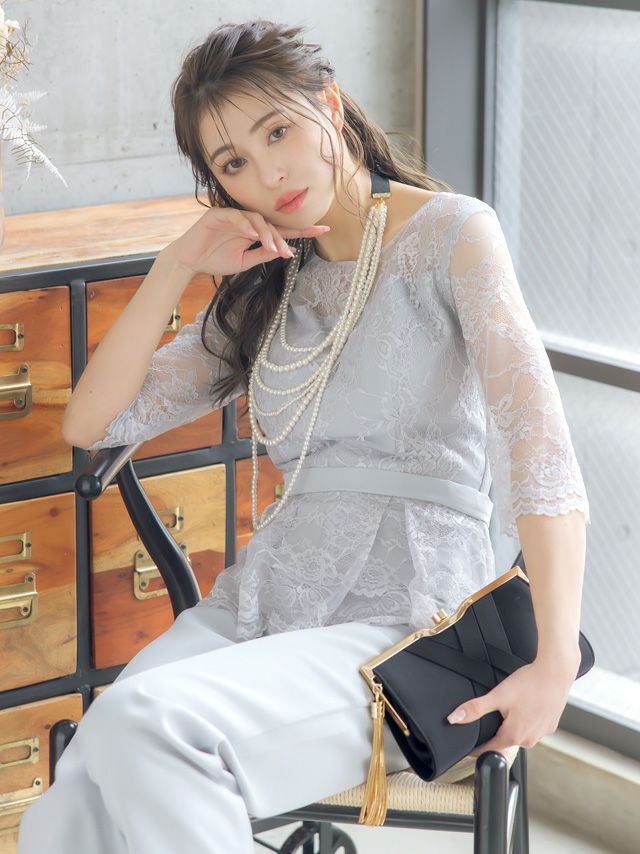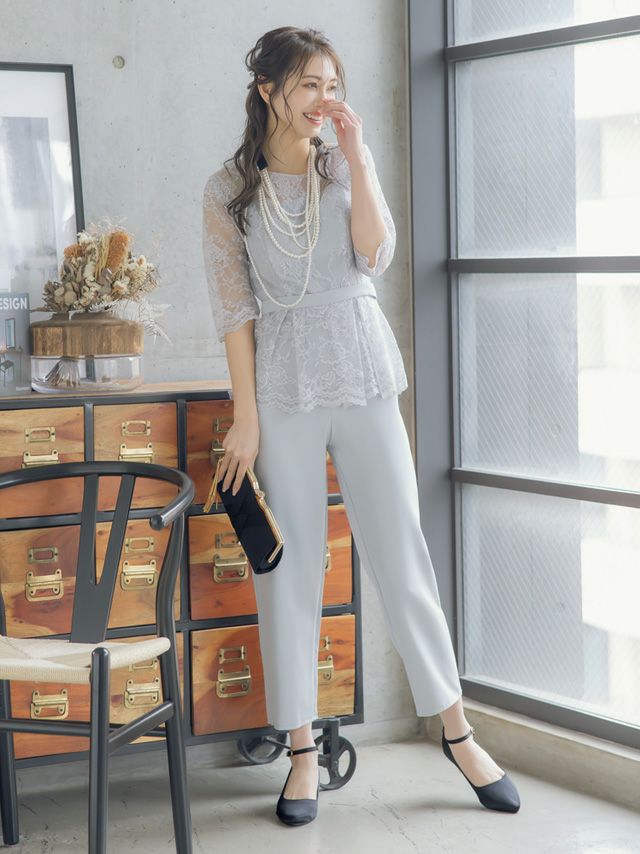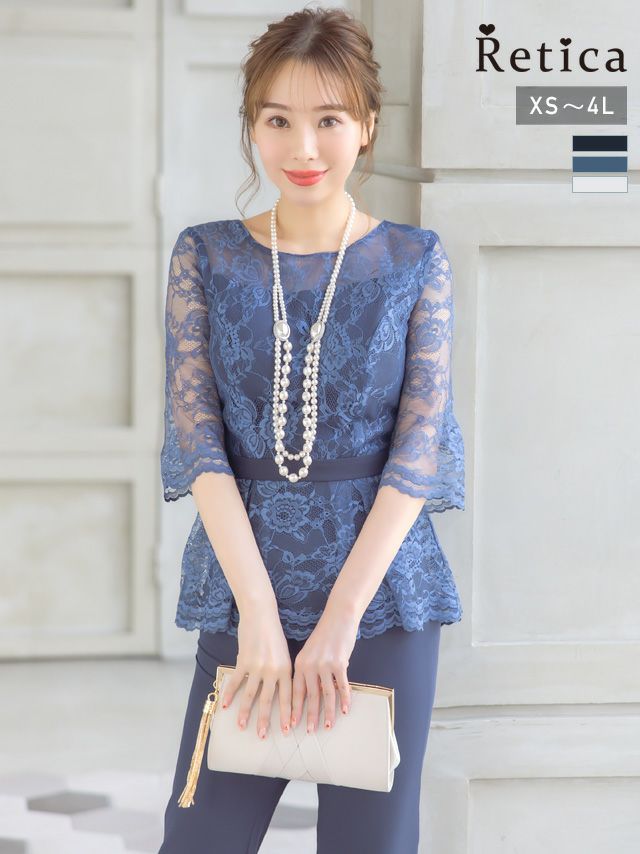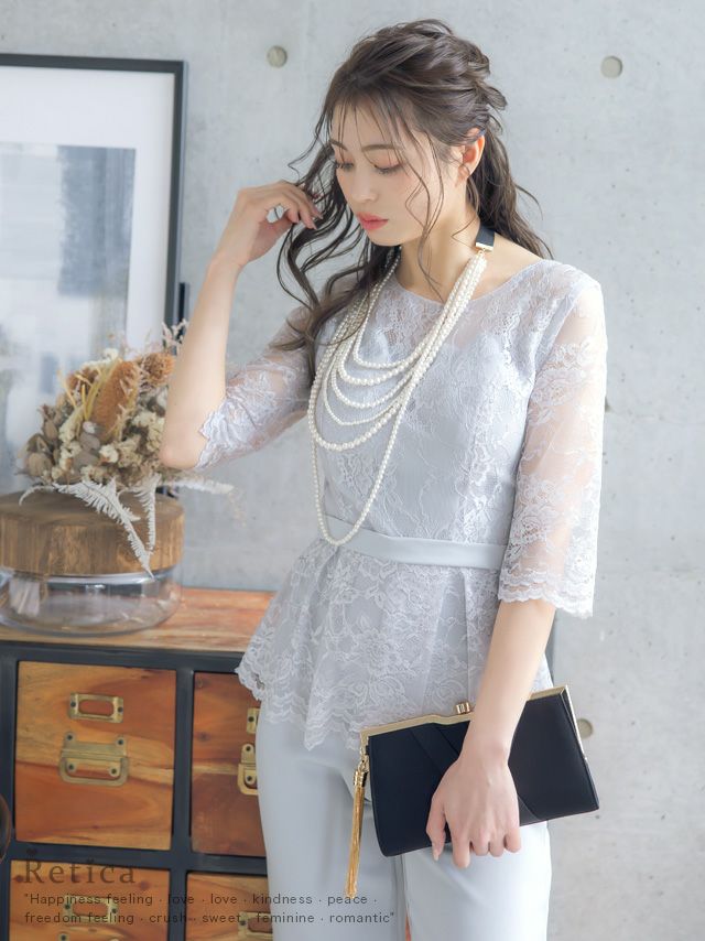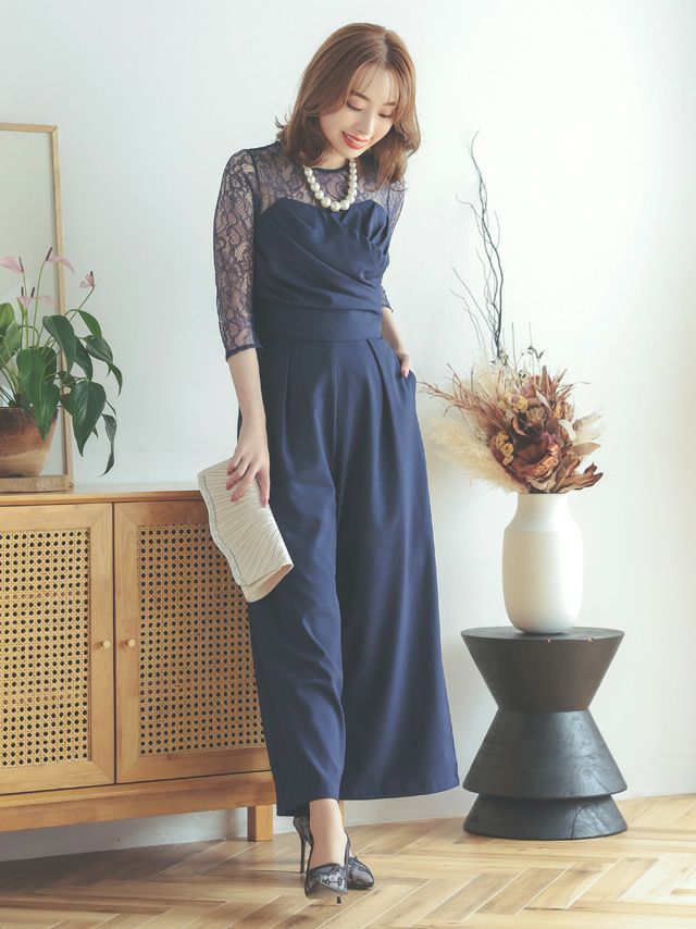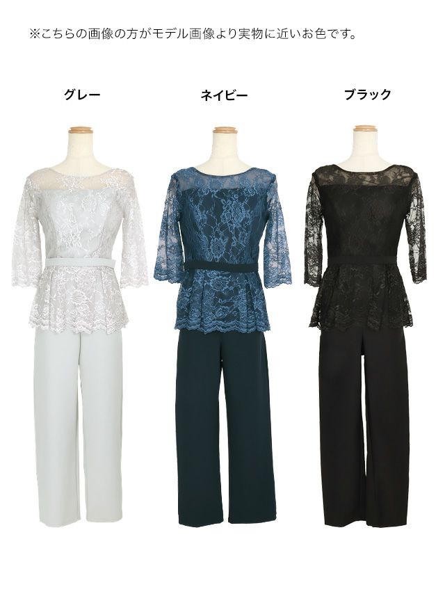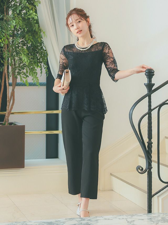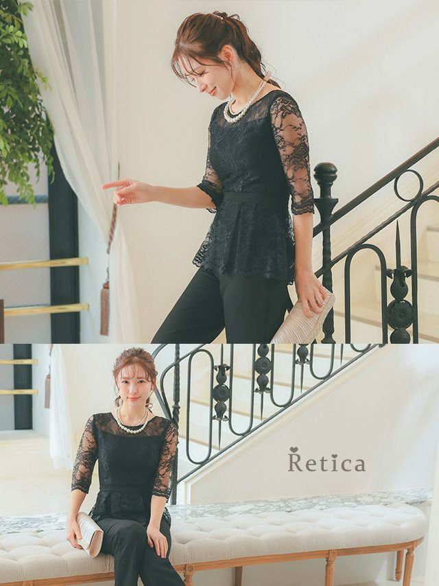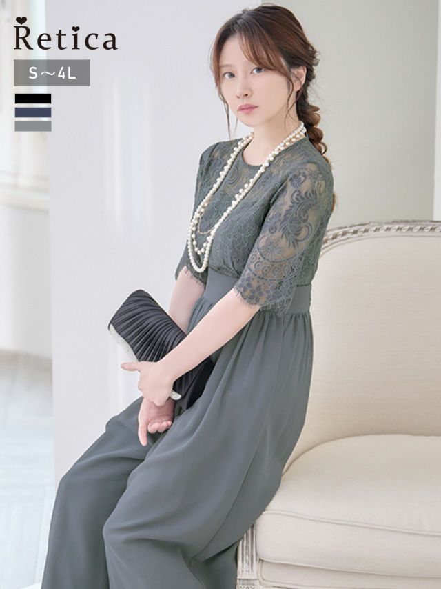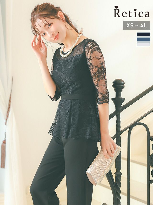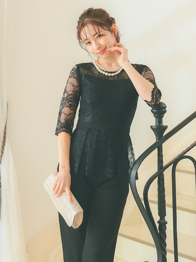 パンツでも、エレガントは叶う。 [SALE] ペプラムレースオールインワンパンツドレス (XSサイズ~4Lサイズ)
