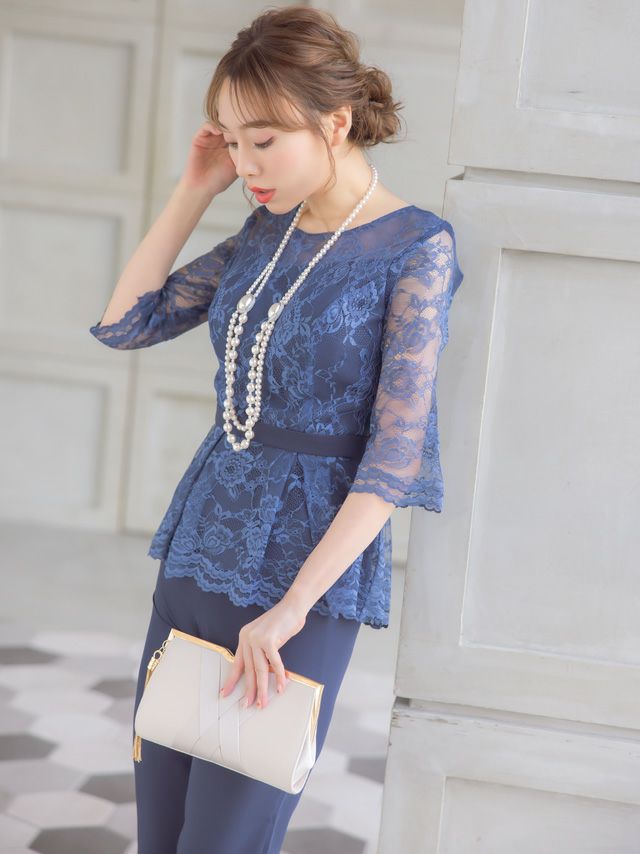 11/18再入荷★着回しもできる万能ドレス♪ [SALE] レーススリーブウエストリボンセットアップパンツパーティードレス (Sサイズ~3Lサイズ)