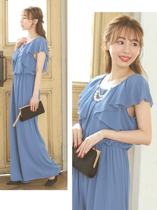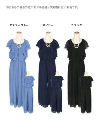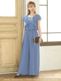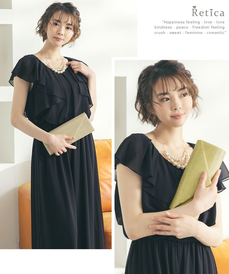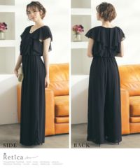 フリル×レースワンカラーシフォンロングパーティードレス (Sサイズ~4Lサイズ)