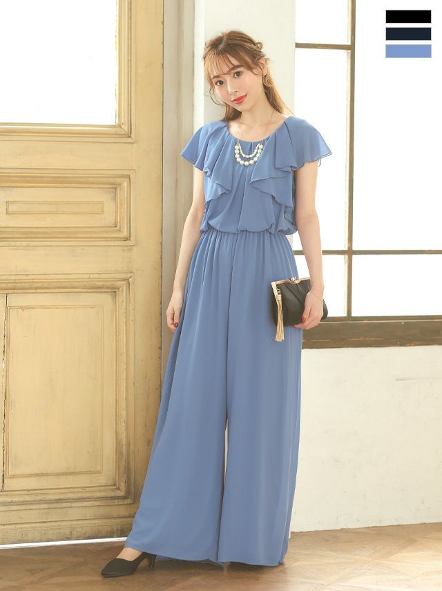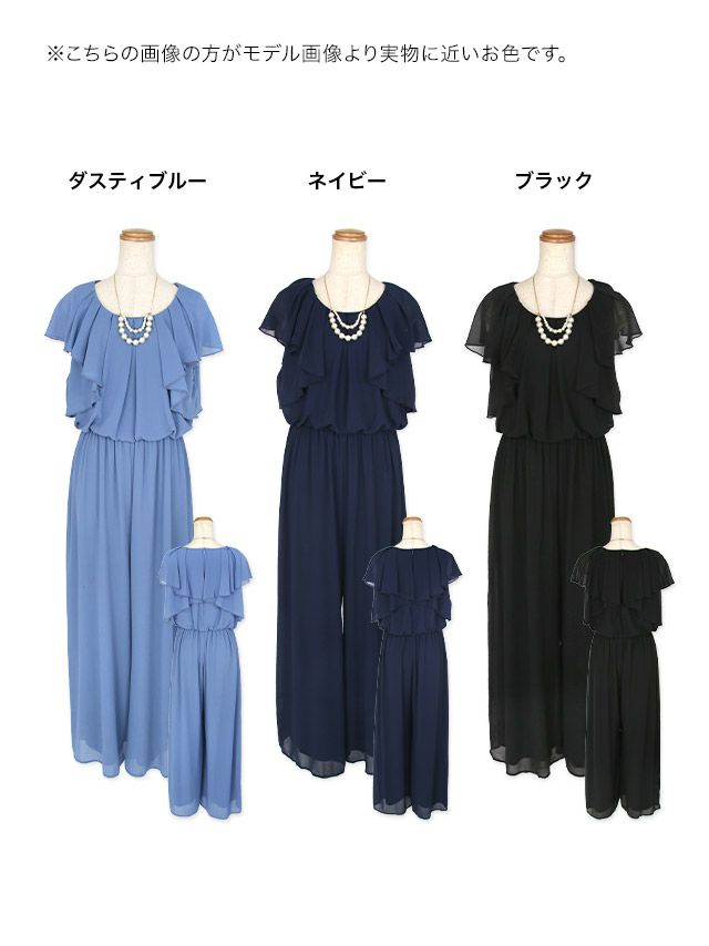 シフォンフリルデザインラウンドネックワイドパンツプチプラパーティードレスのカラーバリエーション