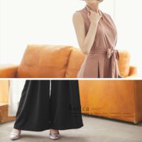 ハイウエストでかっこよく決まる♪ ノースリーブウエストリボンワイドパンツプチプラパーティードレス (Mサイズ~XXLサイズ)