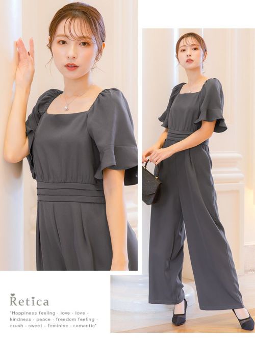 4. [SALE] スクエアネックワイドパンツ結婚式パーティードレス