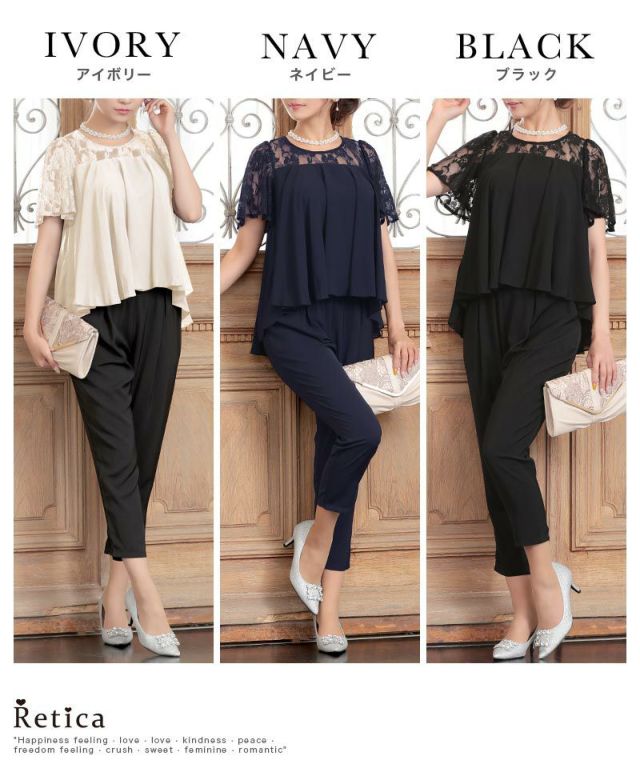 肩レースデザインゆったり半袖セットアップパンツプチプラパーティードレスのカラーバリエーション