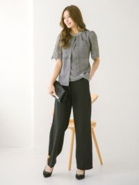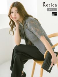 セットアップで着回し可能♪ [SALE] レース袖パールネックレス風デザインセットアップパンツパーティードレス (Sサイズ~XXLサイズ)