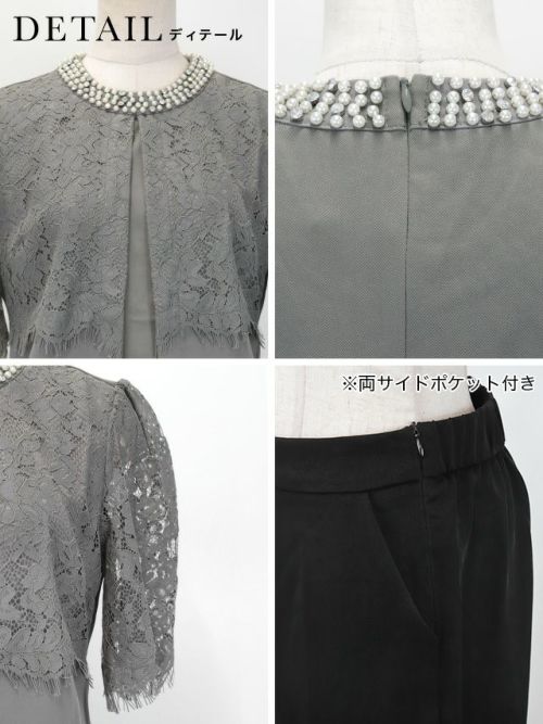 レース袖パールネックレス風デザインセットアップパンツパーティードレスの商品詳細1