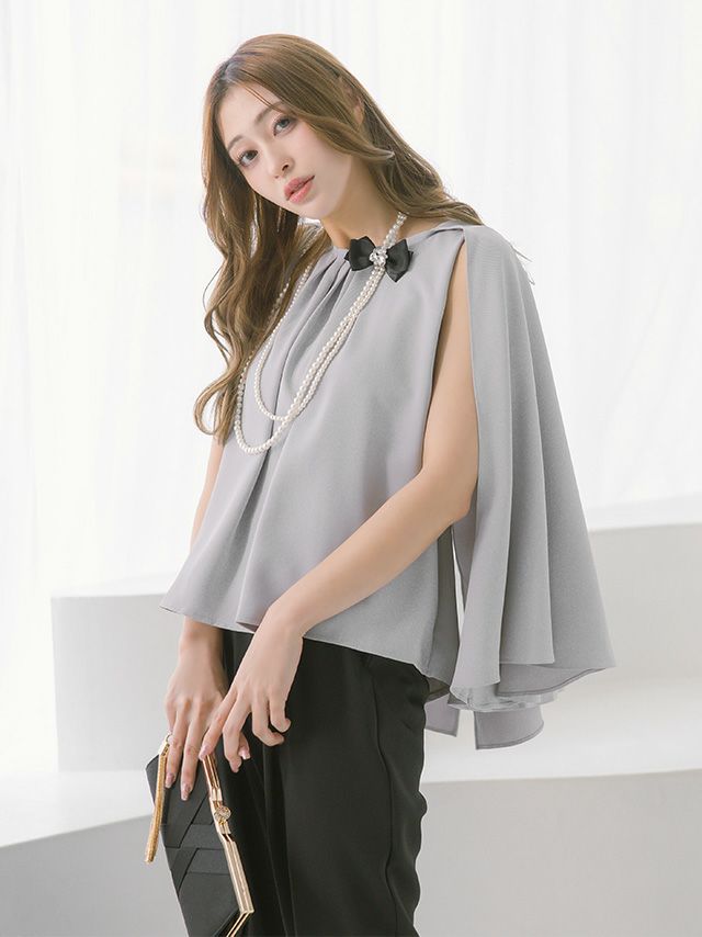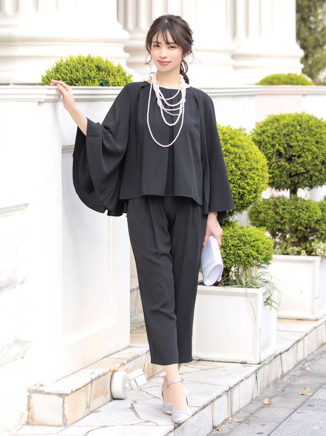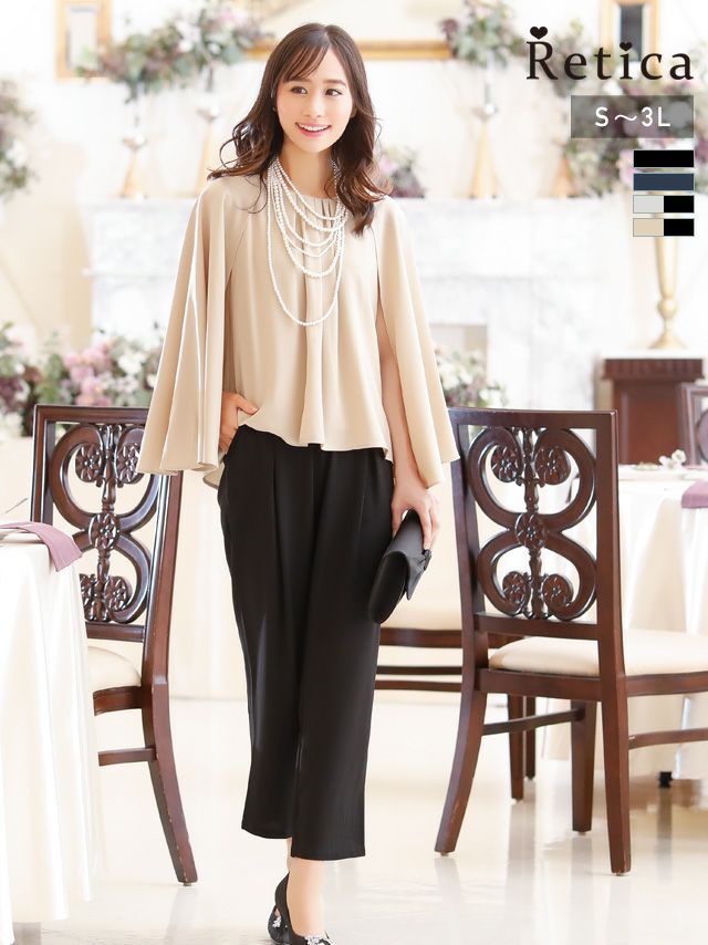 こなれ感漂い使いまわせる♪ [SALE] ツーピースケープタックトップスパンツスタイルパーティードレス (Sサイズ~XXLサイズ)