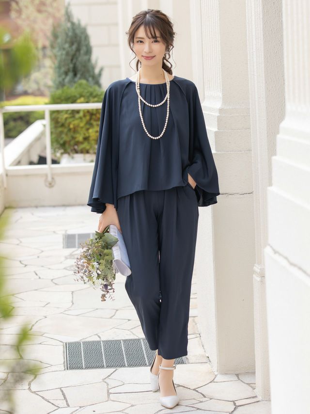 お呼ばれドレス パンツ ツーピースケープタックトップスパンツスタイルパーティードレス