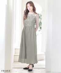 袖ラメレースシフォンフレアロングパーティードレス (Sサイズ~4Lサイズ)