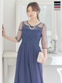 ラッセルレースチュールスリーブシフォンドレープワイドパンツパーティードレスのカラーバリエーション画像