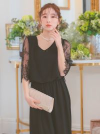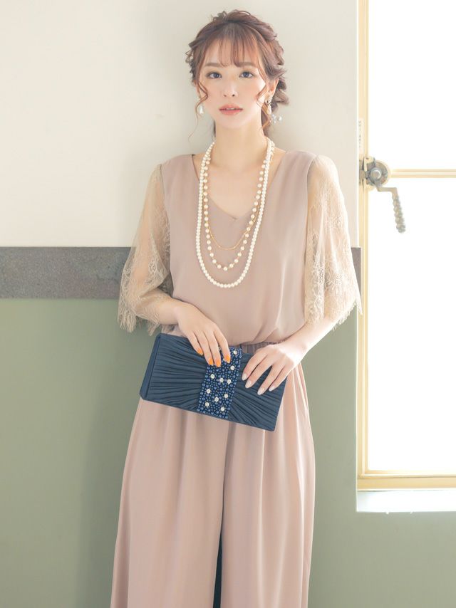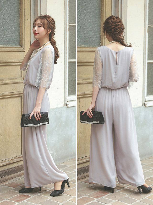 フレアレース袖Vネックラインワイドパンツプチプラパーティードレスの商品詳細1