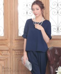 ペプラム袖ありトップスセットアップパンツプチプラパーティードレスのイメージ画像2
