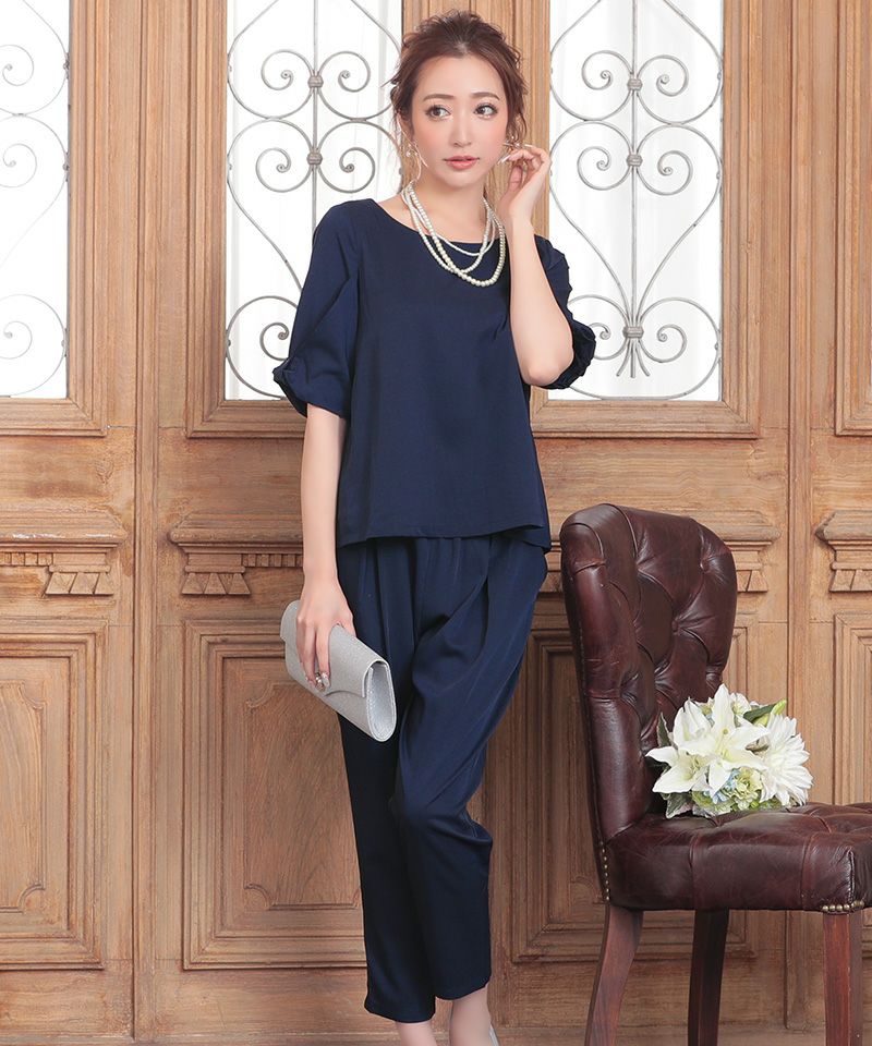 ペプラム袖ありトップスセットアップパンツプチプラパーティードレスの商品詳細1