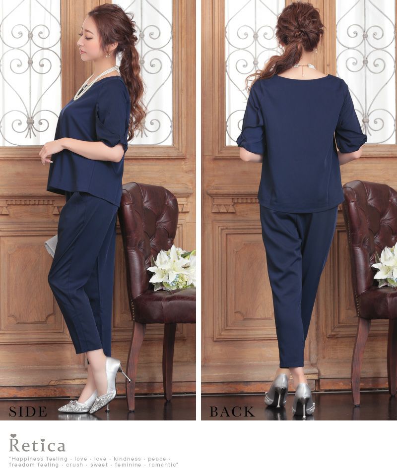 ペプラム袖ありトップスセットアップパンツプチプラパーティードレスのスペック表