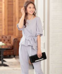 パーティードレス パンツ プチプラ ペプラム風リボンベルトセットアップパンツドレス