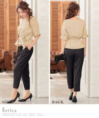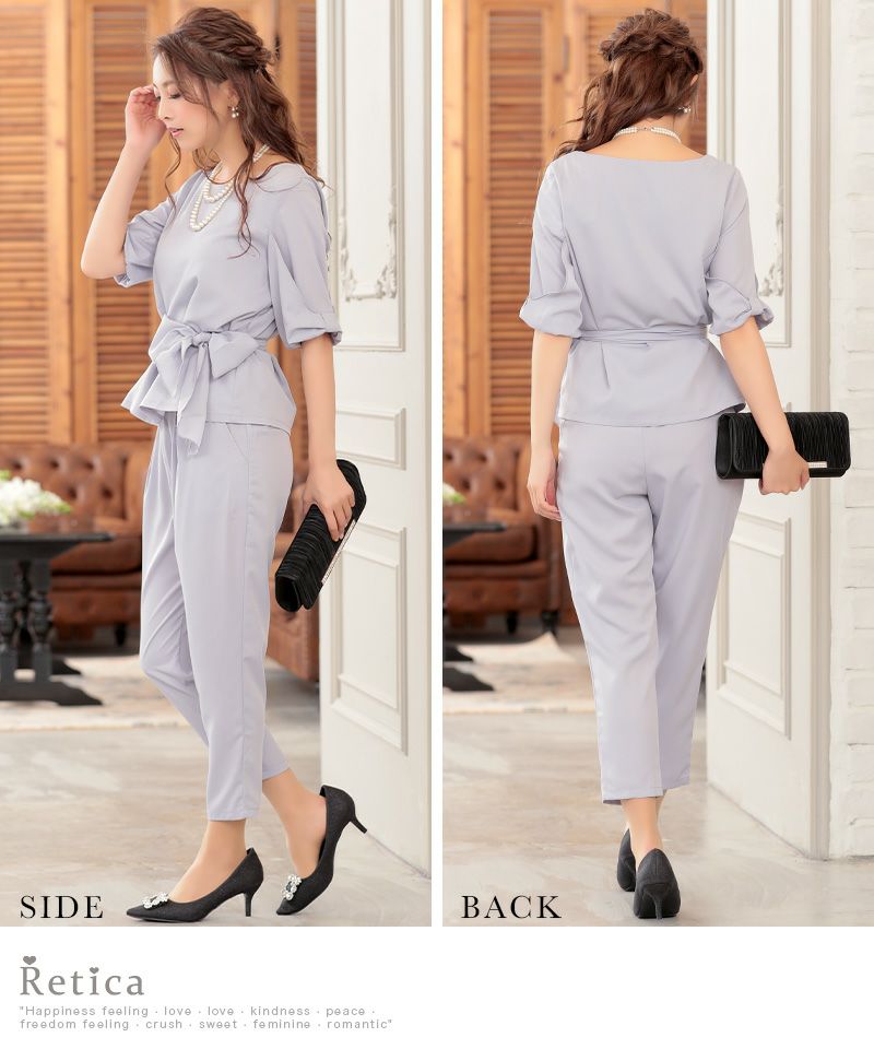 4. ペプラム風リボンベルトセットアップパンツプチプラパーティードレス (Sサイズ~XXLサイズ)