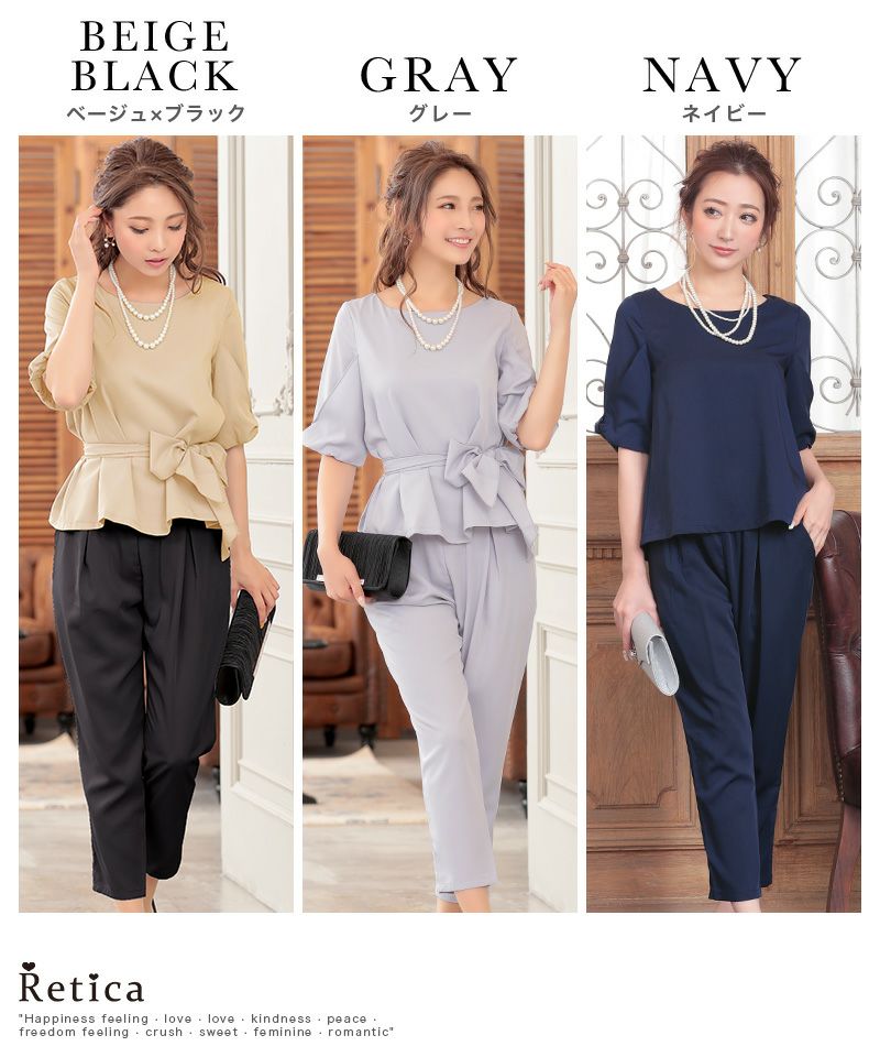 ペプラム袖ありトップスセットアップパンツプチプラパーティードレスのカラーバリエーション