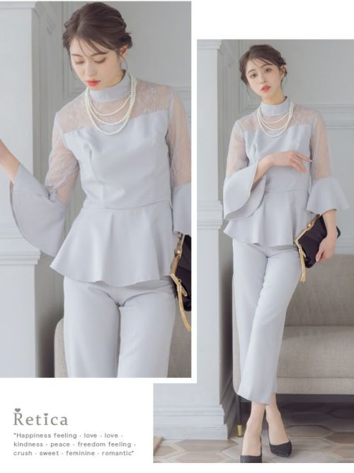 4. [SALE] ハイネックフレアスリーブオールインワンパンツパーティードレス (XSサイズ~4Lサイズ)