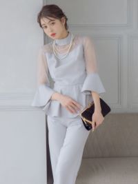 3. [SALE] ハイネックフレアスリーブオールインワンパンツパーティードレス (XSサイズ~4Lサイズ)