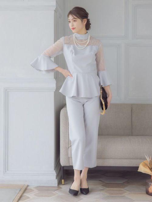 4. グレー系パンツドレス