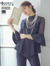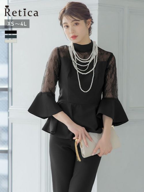 スタイルアップ効果抜群♪ [SALE] ハイネックフレアスリーブオールインワンパンツパーティードレス (XSサイズ~4Lサイズ)
