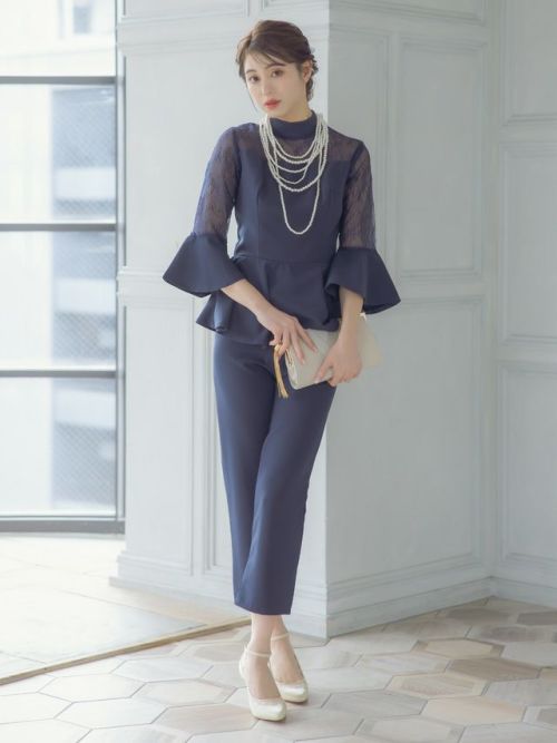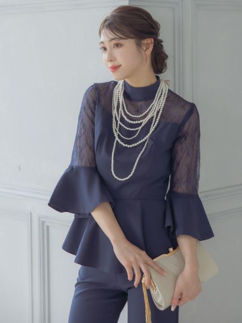 5. [SALE] ハイネックフレアスリーブオールインワンパンツパーティードレス (XSサイズ~4Lサイズ)