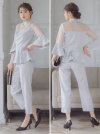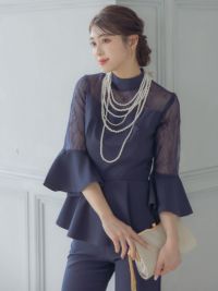 ハイネック七分袖レース切り替えパンツオールインワンパーティードレスの商品詳細1