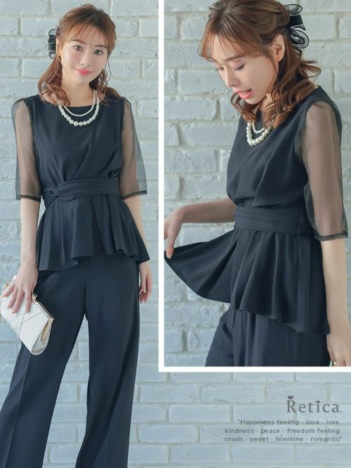 五分袖ドレープデザインセットアップパンツパーティードレスのスペック表