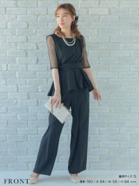 五分袖ドレープデザインセットアップパンツパーティードレスのフロント全身