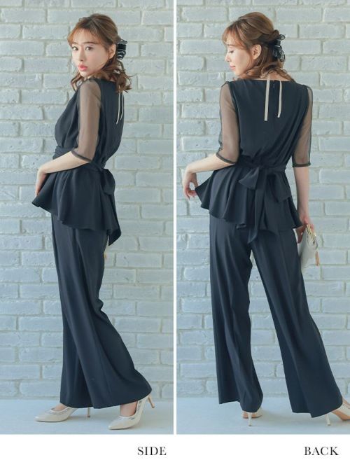 五分袖ドレープデザインセットアップパンツパーティードレスの商品詳細1