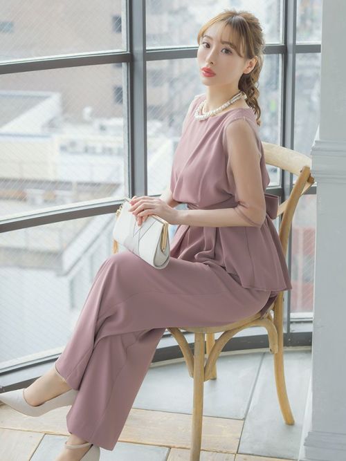ワンカラー袖ありバックリボンセパレートパンツパーティードレスの商品詳細1
