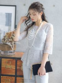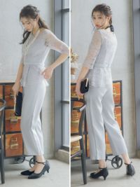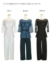 品よく華やか、動きやすさも忘れない♪ [SALE] 七分袖ウエストマークレーストップスパンツオールインワンパーティードレス (XSサイズ~4Lサイズ)