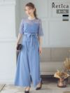 5. [SALE] 五分袖レースウエストリボンセパレートパンツパーティードレス (Sサイズ~3Lサイズ)