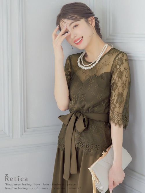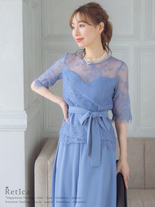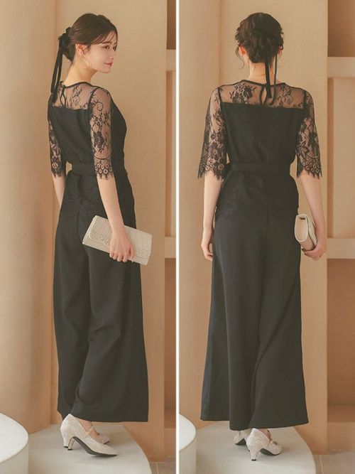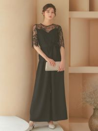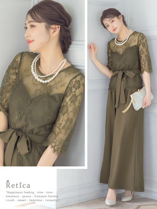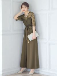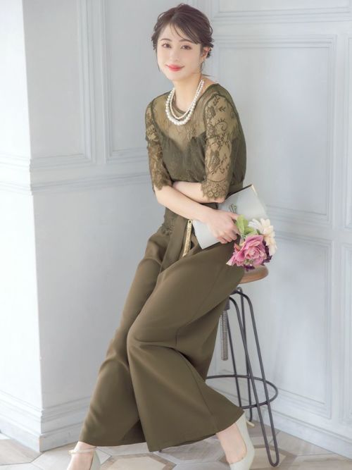繊細なレース遣いが上品なセパレートパンツドレス。