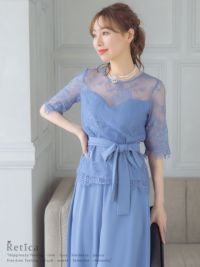 4. [SALE] 五分袖レースウエストリボンセパレートパンツパーティードレス (Sサイズ~3Lサイズ)