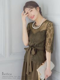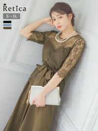 3. [SALE] 五分袖レースウエストリボンセパレートパンツパーティードレス (Sサイズ~3Lサイズ)