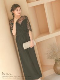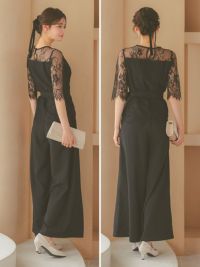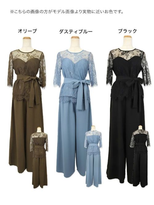 繊細なレースが上品に魅せる♪ [SALE] 五分袖レースウエストリボンセパレートパンツパーティードレス (Sサイズ~3Lサイズ)