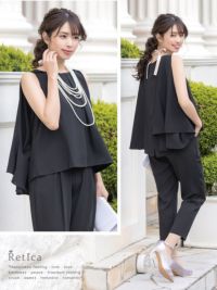 4. [SALE] ケープ風フレアトップス×パンツセットアップパーティードレス (Sサイズ~XXLサイズ)
