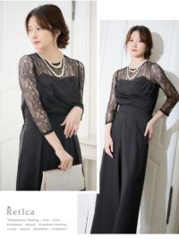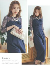 デコルテレーススリーブカシュクールデザインパンツパーティードレスの商品詳細1