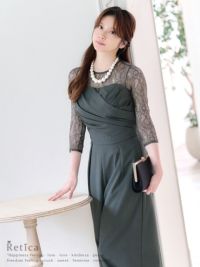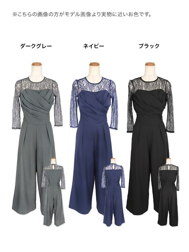 デコルテレーススリーブカシュクールデザインパンツパーティードレスのカラーバリエーション