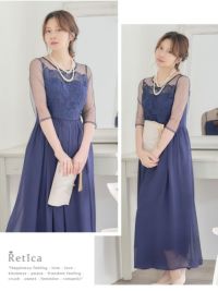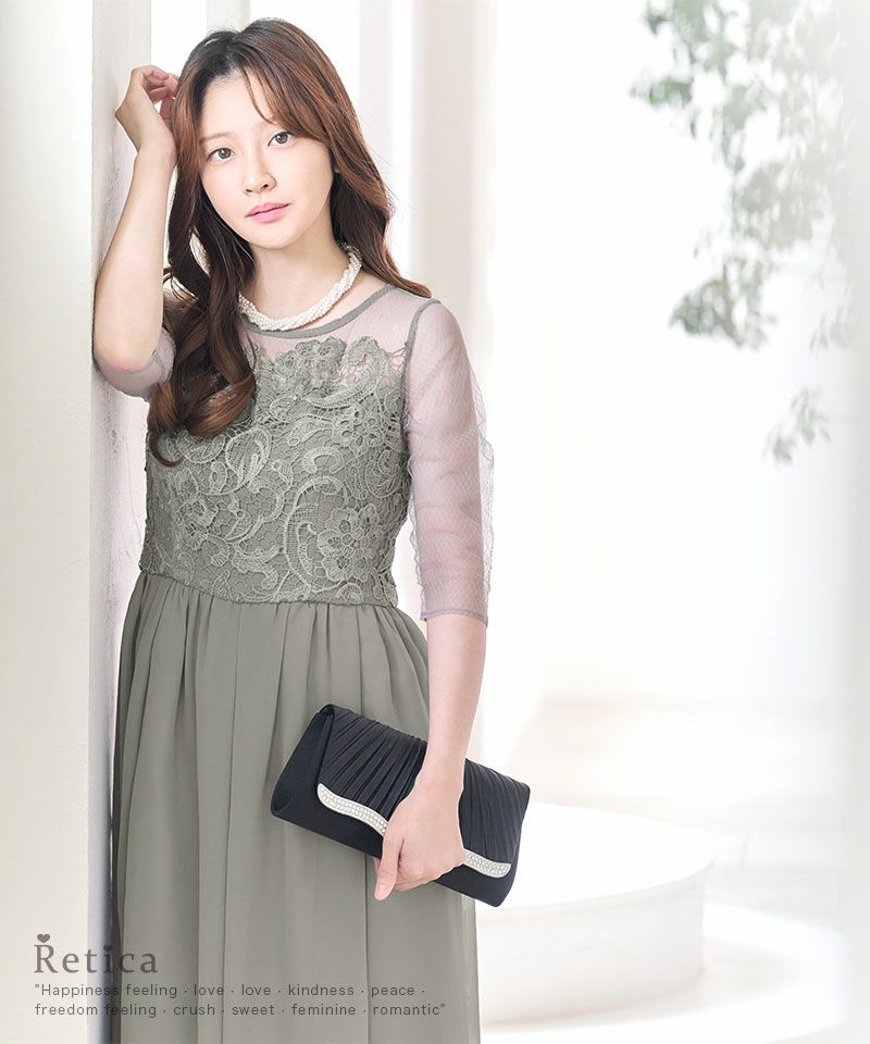 リーフ柄ラッセルレース七分袖ドレープギャザーシフォンパンツパーティードレスのブログ