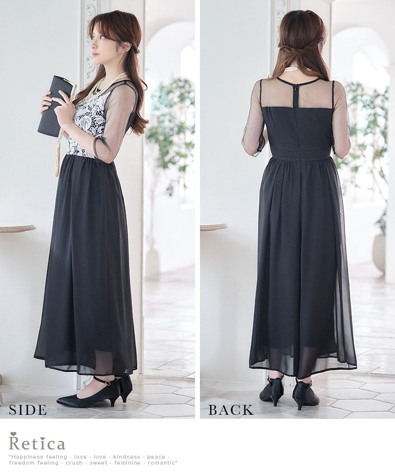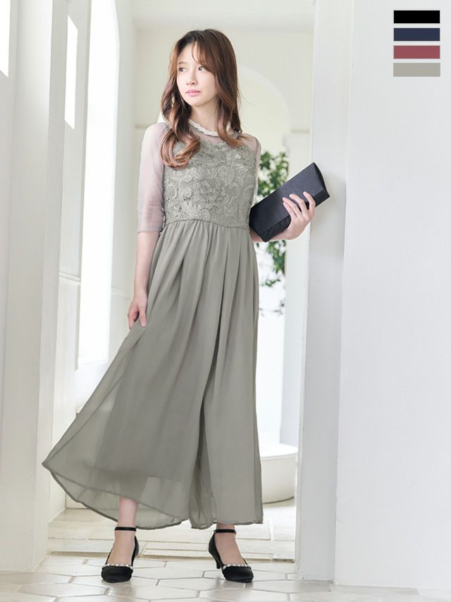 ラメなし ロングドレス 体型カバー ワンピース 敏感肌対応 結婚式 二次会 お呼ばれ 大人 上品 (Sサイズ~4Lサイズ)